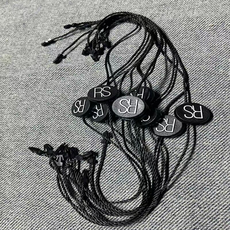One of the primary occasions for using this black hang tag string is in retail environments where garment swing tags play a crucial role in conveying product information, branding, and pricing. Whether in boutique stores, large department stores, or pop-up shops, the black hang tag string ensures that garment swing tags remain firmly attached to items such as shirts, dresses, jackets, and accessories. Its flexible nature allows it to be easily threaded through tag holes and tied securely, making it suitable for a variety of fabrics and garment types without causing damage.